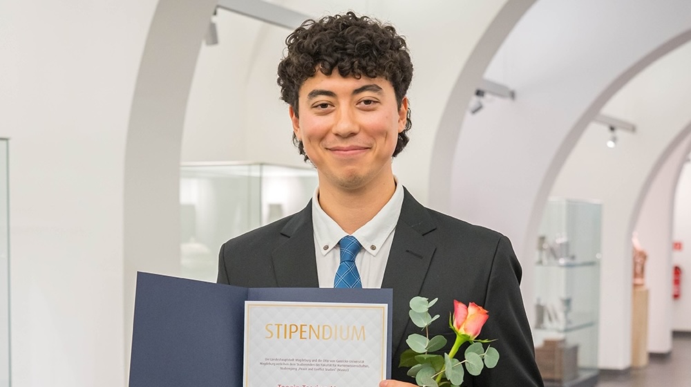 „Wir leben in einer Zeit, in der Konflikte allgegenwärtig sind und Frieden eher ein abstraktes Konzept.“ Wenn Tenzin Tsering Murry diesen Satz mit leichtem schottischen Akzent sagt, klingt kein Pathos mit, sondern Nachdenklichkeit. Der 26-Jährige studiert an der Universität Magdeburg im Masterstudiengang Peace and Conflict Studies (PACS) und ist einer von fast 4000 internationalen Studierenden der Uni Magdeburg, die das Campusleben und Magdeburgs Stadtgesellschaft mit ihrem großen Engagement bereichern.