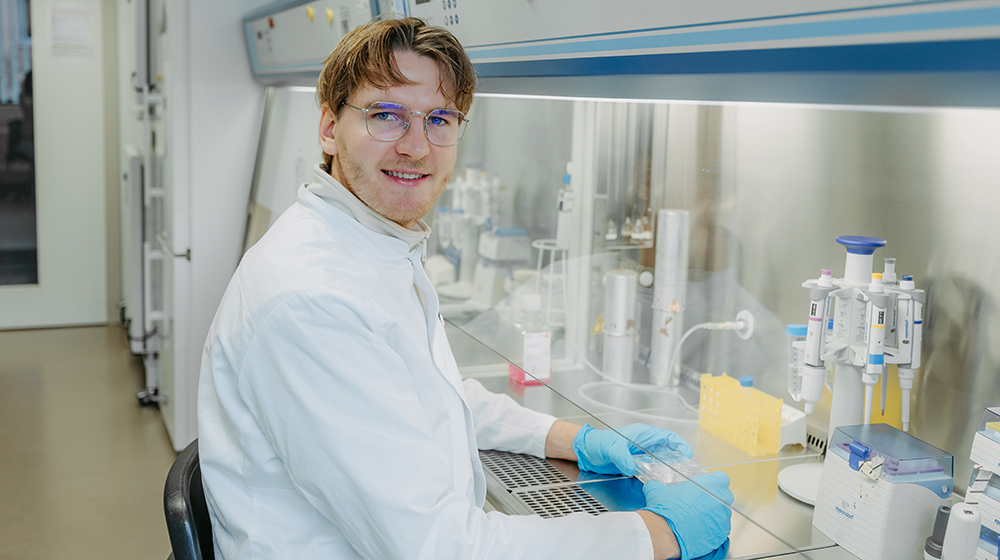 In Noah Müllers Forschung geht es darum neue medizinische Geräte erst einmal sicher im Labor zu prüfen, bevor sie an Tieren oder Menschen eingesetzt werden. Er arbeitet in der Core Facility Tissue Engineering unter der Leitung von Prof. Heike Walles. Dahinter steckt ein interdisziplinäres Forschungsfeld, in dem Ingenieurwissenschaften, Biologie und Materialforschung zusammenkommen. Ziel ist es, im Labor künstliches Gewebe oder sogar ganze Organstrukturen herzustellen.