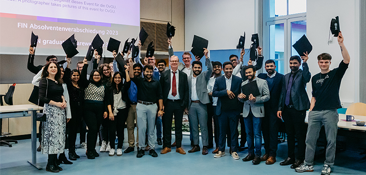 Group photo of the graduates of the Faculty of Mechanical Engineering 2023 (photo: Jana Dünnhaupt | Uni Magdeburg)